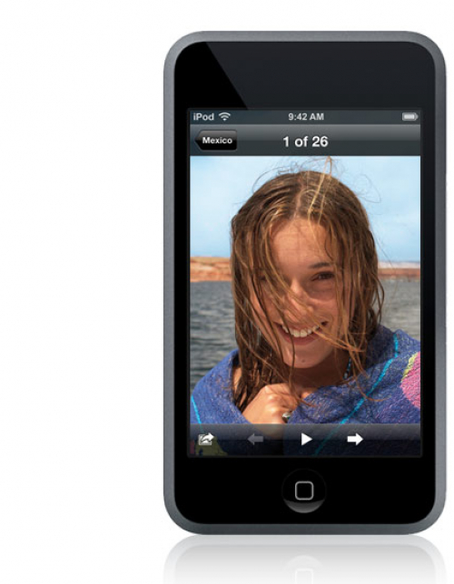 iPod touch features the same multi-touch screen technology as iPhone. Pinch to zoom in on a photo. Scroll through your songs and videos with a flick. Flip through your library by album artwork with Cover Flow.